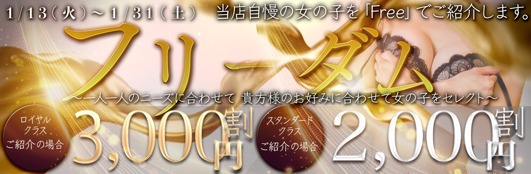 お客様のニーズに合わせて、 こちらがオススメの女の子をセレクト♪ 開催期間 1月13(火)〜1月31(土) ご利用条件 フリーでのご予約となります。 ご予約時に「イベント名」をお伝え下さい。 ご利用特典 ご紹介するキャストが、 ロイヤルクラスの場合 総額から3,0...